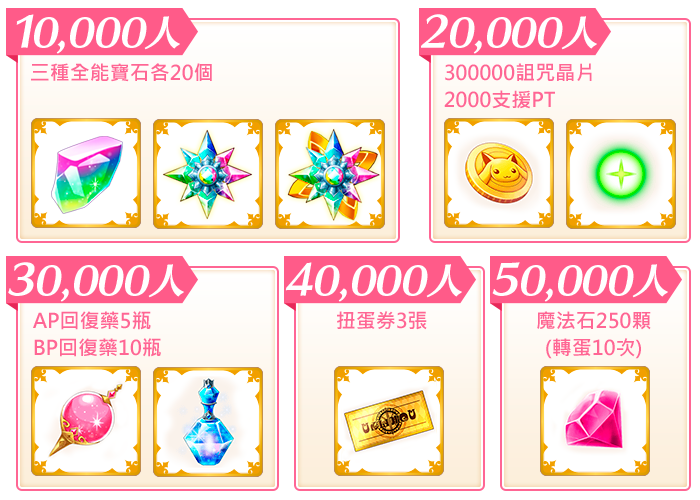 - *每階段獎勵會累積,最後遊戲上市時做一併發送。