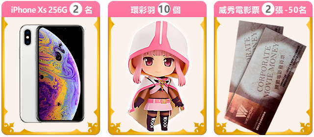 【 iPhone Xs 256G】2名、【黏土人-環彩羽】10個、【威秀電影票×2】50名